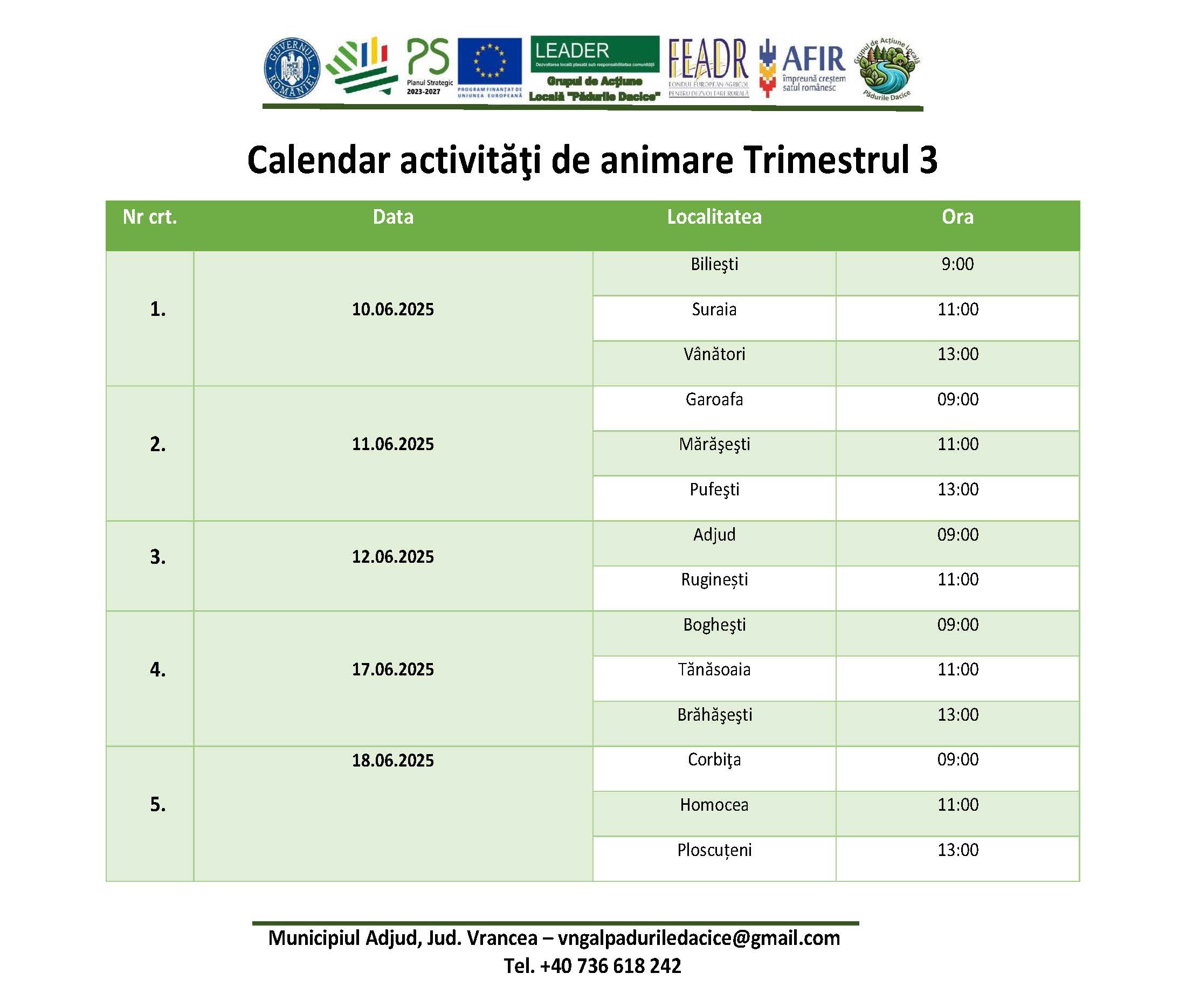 CALENDAR ACTIVITATI DE ANIMARE TRIMESTRUL 3